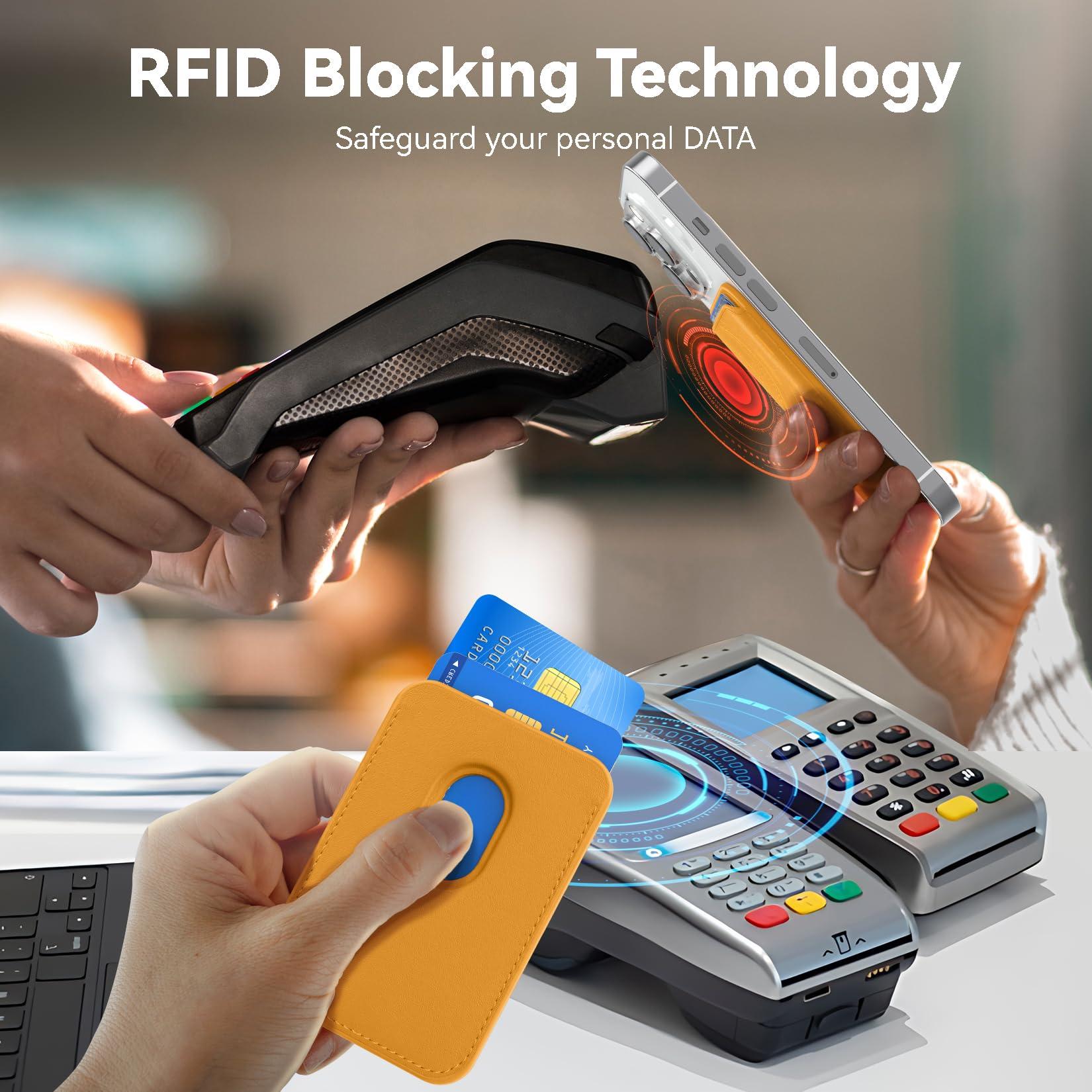 KRTALS Magnetic Mag-safe Wallet Cell Phone Card Holder for iPhone 15 Series, Stronger Magnetic RFID Leather Phone Wallet Stick on Series of iPhone 17/16/15/14/13/12 Pro/Promax, Yellow
